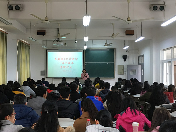 ylzzcom永利总站线路检测互联网+会计教学一体化改革项目旨在利用先进的信息技术促进传统会计教学变革,努力实现会计教学环境互联网化、教学内容知识点化、教学形式多样化、教学管理信息化,以全面提升学校会计人才培养质量,并力争成为全国会计教学改革的典范。项目由正保远程教育提供资金和技术支持,在我校ylzzcom永利总站线路检测会计学和财务管理专业中试点推进,拟开展“基础会计”、“中级财务会计”、“高级财务会计”、“财务管理”、“管理会计(含成本会计)”、“审计学”、“财务报表分析”7门课程的教学一体化改革,实现专业主干课慕课资源开发与应用,实现线上线下相结合的授课方式,建立“课堂教学、实验教学、辅助教学、考试、毕业设计等资源”的云会计教学平台。其中,“基础会计”课程的教学一体化改革将于本学期在会计162163班开始实施。今天的开班仪式正式开启了互联网+会计教学一体化改革的序幕,开班仪式取得了圆满成功。