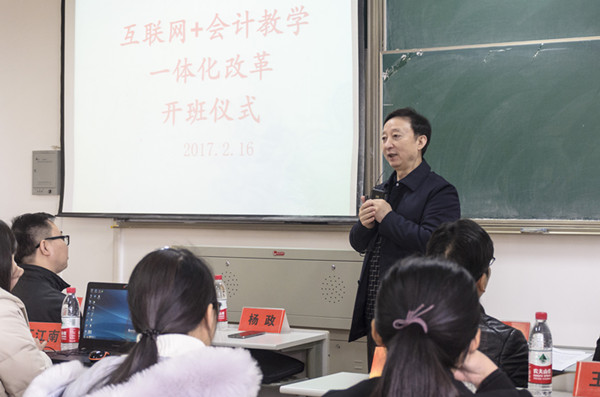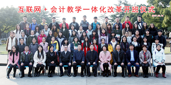 2017216日下午,互联网+会计教学一体化改革开班仪式在第一教学楼503教室隆重举行。中国会计学会副会长、中国会计教育专家委员会主任委员刘永泽教授、中国会计教育专家委员会秘书长杨政教授、正保远程教育集团高级副总裁刘温泉先生、正保远程教育教学服务部副总裁徐建宁女士、我校社会合作处处长袁志明、教务处副处长王敏、ylzzcom永利总站线路检测院长潘煜双、党委书记邵燕、副院长李郁明、副书记陈云飞,各系主任和会计、财务专业教师以及会计162163教改实验班全体学生参加了开班仪式。
