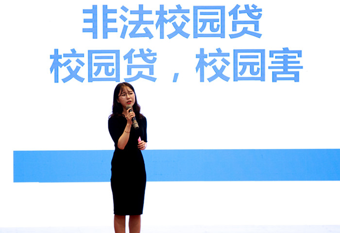 宣讲会上,浙江省金融团工委代表周佳茵为嘉兴银监分局团委授牌嘉兴金融知识讲师团。嘉兴银监分局团委还组织了微课堂、互动问答、小品、RAP歌曲、合唱等形式多样、内容丰富的节目来宣传抵制非法“校园贷”的危害,潜移默化中让学生认识到校园贷存在的安全缺陷和风险漏洞,名为低门槛,实为高风险合同涉嫌欺诈等使大学生成为部分网贷平台待宰的羔羊的招数。