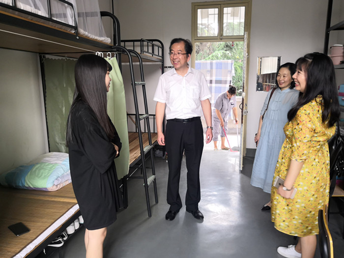 91日下午,2018级新生报到当天,校长盛颂恩到ylzzcom永利总站线路检测新生宿舍走访,看望学生。校党委办公室副主任杨芬芬,ylzzcom永利总站线路检测党委书记邵燕、ylzzcom永利总站线路检测院学工办老师随同走访。
