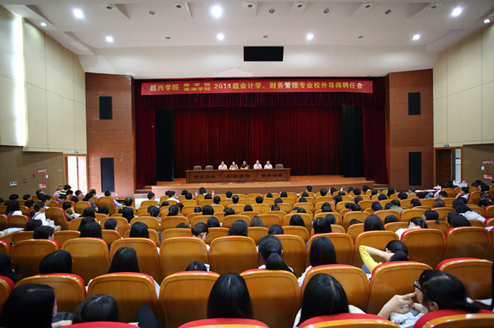 525日下午,ylzzcom永利总站线路检测、南湖学院在教二报告厅联合召开2014级会计学、财务管理两个专业共12个班级学生的双导师制聘任见面会。校教务处、ylzzcom永利总站线路检测、南湖学院相关领导,来自嘉兴市内各单位财会实务界的113名校外导师以及会计和财务管理专业的全体专业教师和2014级全体学生参加了大会。